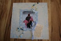 PINK! This story is kinda cute, click on the picture so you can read it! I used Scenic Route Paper Co.'s Brighton Collection, Swiss Alps, Cross Winds, background worn lined paper. Maya Road chipboard snowflakes, the coolest Glimmer Mist ever. This stuff works like magic on paper, chipboard, cardstock, stamp with it etc... Alexx Kesh snowflake, misc chipboard buttons sprayed with Glimmer Mist. Hem tape, Rusty Pickle chipboard letters covered with Cross Winds paper, and Heidi Swapp date stamp.